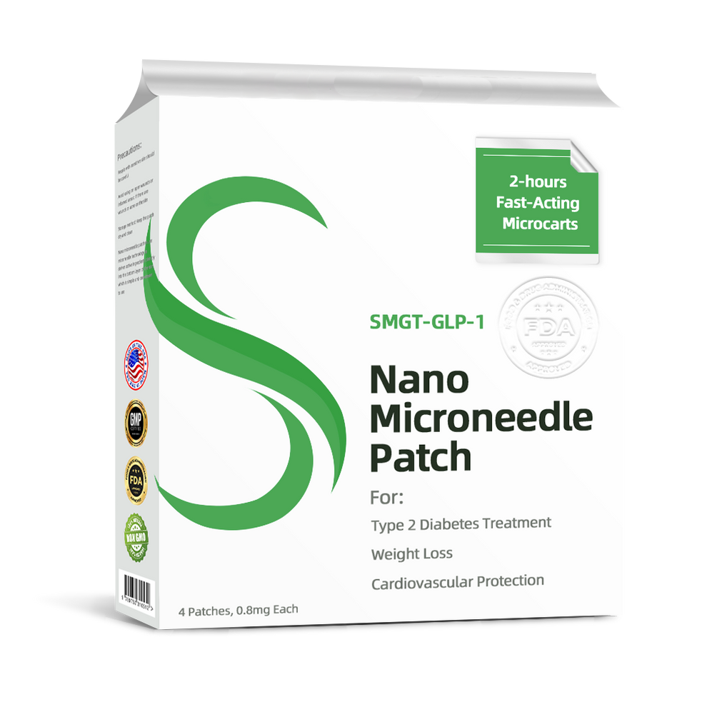 The Nano Microneedle Patch contains GLP-1 in each patch. It works by mimicking the action of Glucagon-like Peptide-1 (GLP-1), promoting insulin secretion, inhibiting glucagon secretion, and delaying gastric emptying, which helps control blood sugar levels and aids in weight loss.